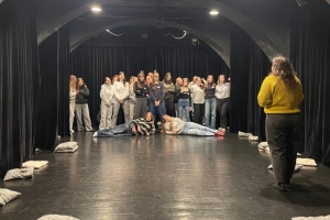 Zájemkyně ze 4.A spolu s Mgr. Čáslavovou zhlédly inscenaci "Agónie (antická reality show)" na prknech HaDivadla, brněnské experimentální scény.