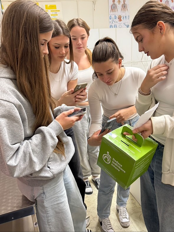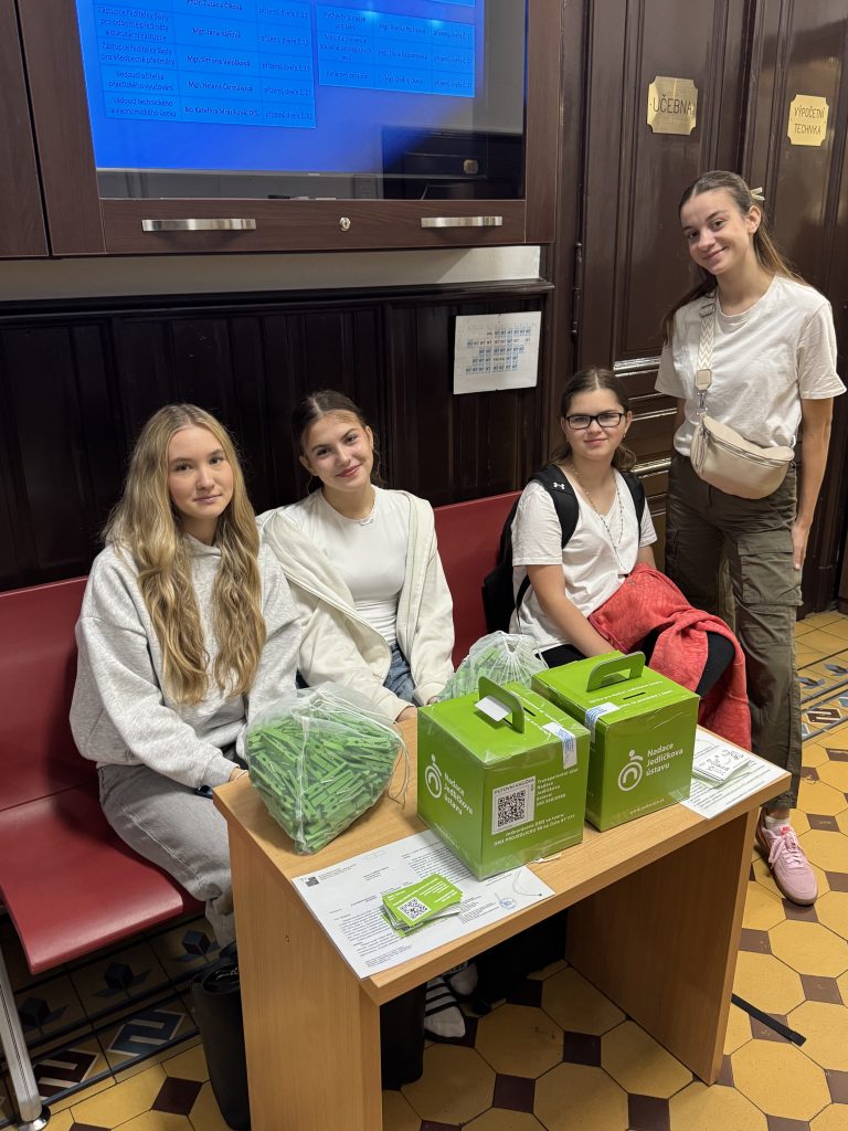 Naše škola se do sbírky zapojila a žákyně třídy 1.S pomáhaly s prodejem zelených kolíčků, které symbolizují spojení světa zdravých a handicapovaných. Podpořily tak své vrstevníky, kteří v životě neměli takové štěstí. Mimo půdu naší školy jsme měly také stanoviště přímo na krajském úřadě, kde mohly žákyně také reprezentovat naši školu a šířit osvětu Kolíčkového dne.