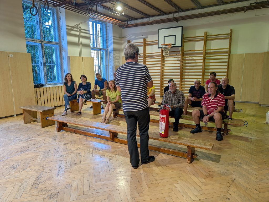 Dne 3. 9. 2025 proběhlo školení zaměstnanců školy, kteří mají funkci požárních hlídek v daných patrech školy. Školitelem byl pan Jiří Klement.